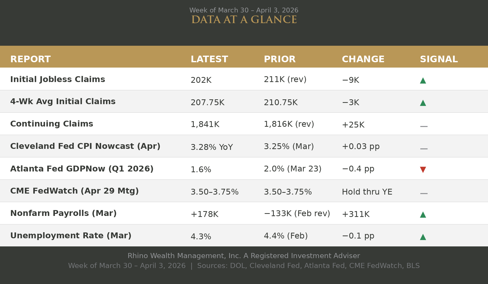 Information presented herein comes from reliable third-party sources but is not guaranteed for accuracy or completeness. Rhino Wealth Management, Inc. disclaims liability for errors or omissions. Portions of this content may be generated using advanced analytical tools, including artificial intelligence, and all such content has been reviewed and validated by Todd Van Der Meid, MBA, CFP®, using proprietary quality-control measures. Rhino Wealth Management, Inc. does not directly hold securities; however, securities mentioned may be included within recommended portfolio models or held by clients. Please refer to our Form ADV for additional details regarding potential conflicts of interest.